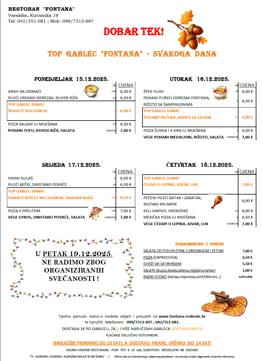 SVAKODNEVNO U PONUDI ZA GABLEC:
