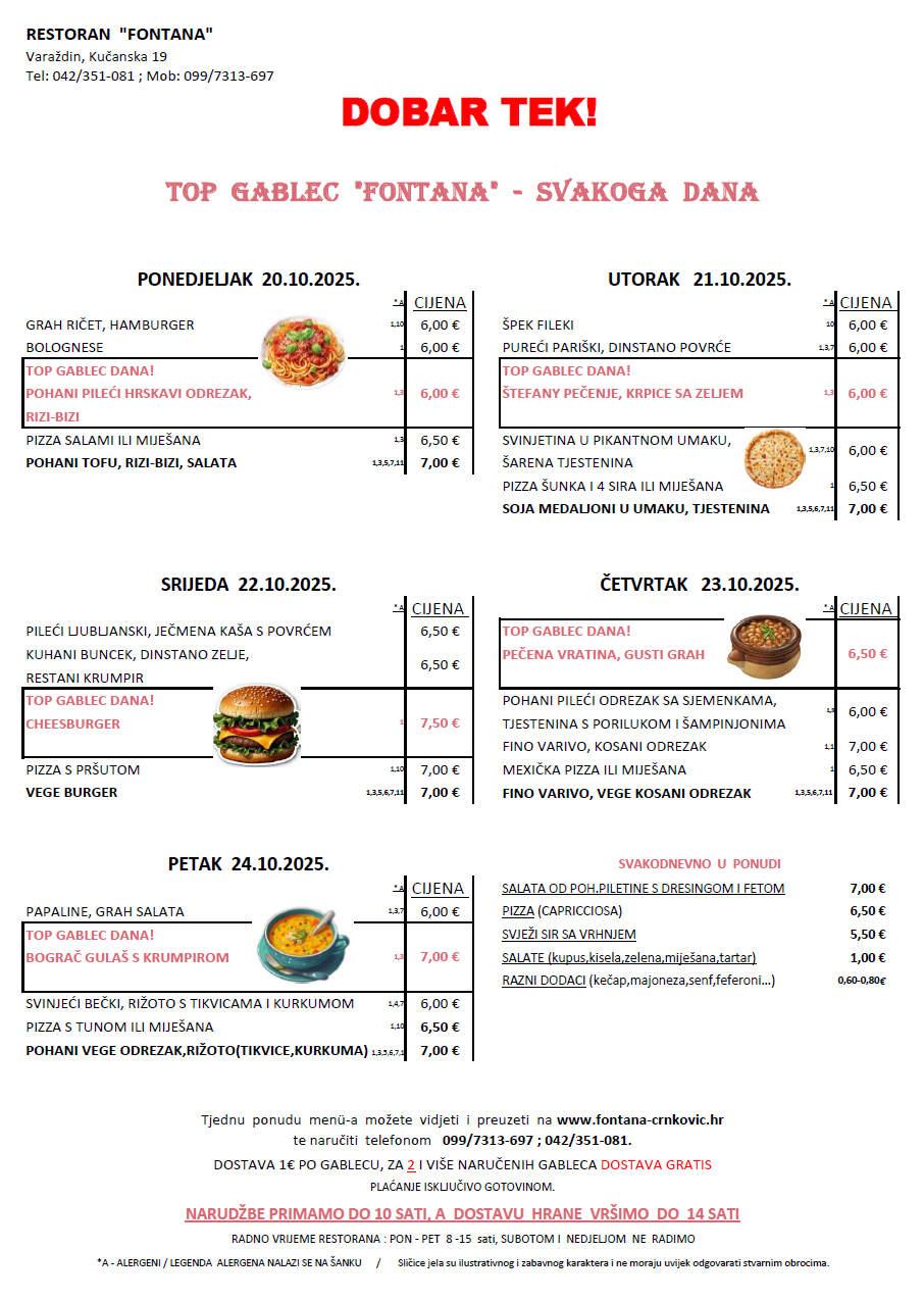 SVAKODNEVNO U PONUDI ZA GABLEC: